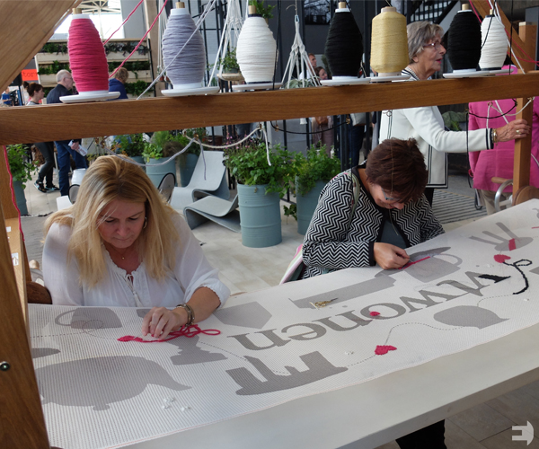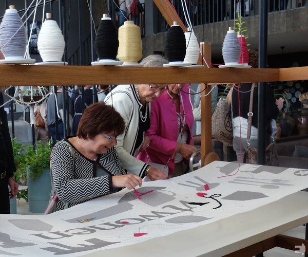 Het Crossover Collectieve gaf gelegenheid aan bezoekers om even rustig wat steken te zetten op een collectief borduurwerk.