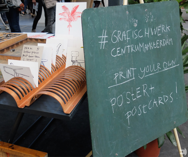 Het Grafisch Werkcentrum boodt bezoekers van de woonbeurs de mogelijkheid om een ontwerp te selecteren, de inkt te kiezen en te laten afdrukken op de ambachtelijke pers.