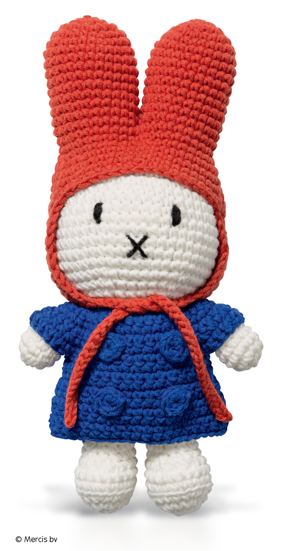 just dutch heeft voor de viering van de 60ste verjaardag van Nijntje een met de hand gehaakte Nijntje op de markt gebracht. Nijntje handmade is 25 cm groot en van 100% katoen. Het allerleukste aan de nijntje handmade zijn de gehaakte kleertjes die je los bij het beroemdste konijntje van Nederland kunt kopen. Er is de bekende rode jurk die Nijntje graag draagt, maar ook een koninginnenset met kroontje. Ik zelf ben helemaal weg van het rode mutsje. Door de toevoeging van de losse kleertjes kunnen kinderen straks de avonturen van Nijntje naspelen of zelf nieuwe verhalen bedenken.
